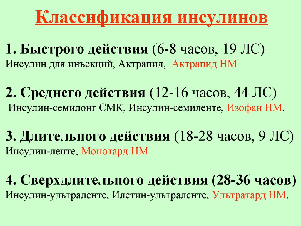 короткого действия, на ночь инсулин средней продолжительности действия (1/3 от суточной дозы, соотношение