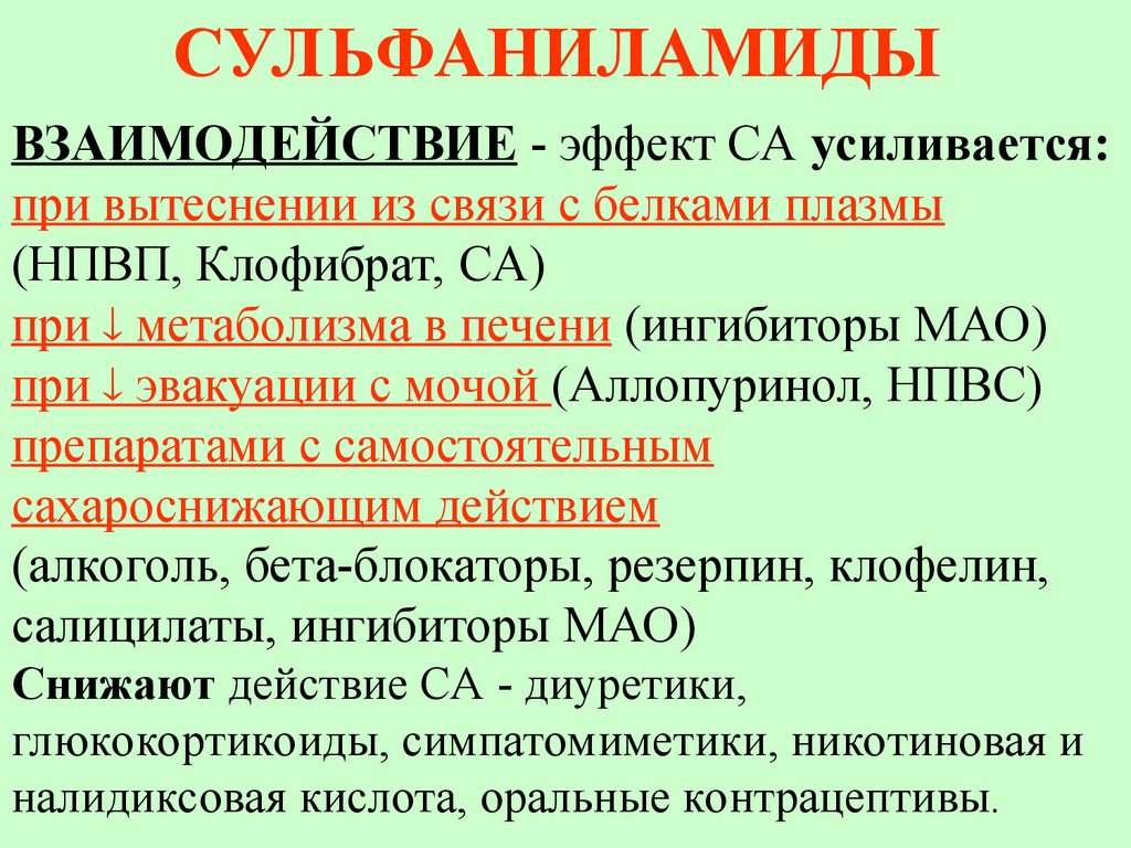 СУЛЬФАНИЛАМИДЫВЗАИМОДЕЙСТВИЕ - эффект СА усиливается: