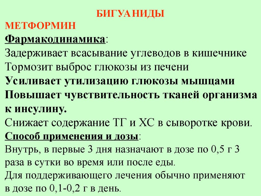 БИГУАНИДЫ применяют в виде монотерапии и вкомбинации с CА и препаратами инсулина.
