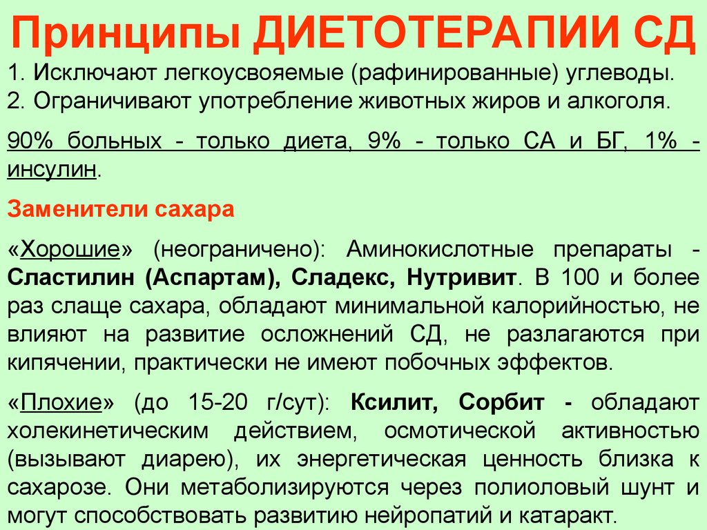 Принципы ДИЕТОТЕРАПИИ СД1. Исключают легкоусвояемые (рафинированные) углеводы.