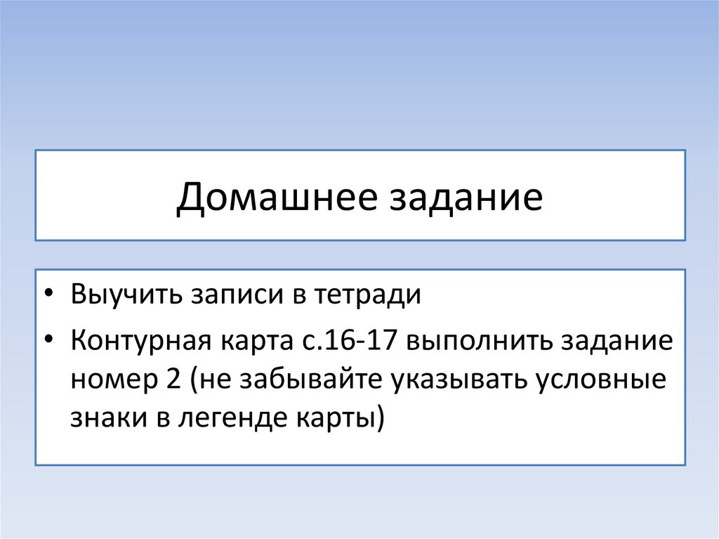 • Контурная карта с.16-17 выполнить задание
