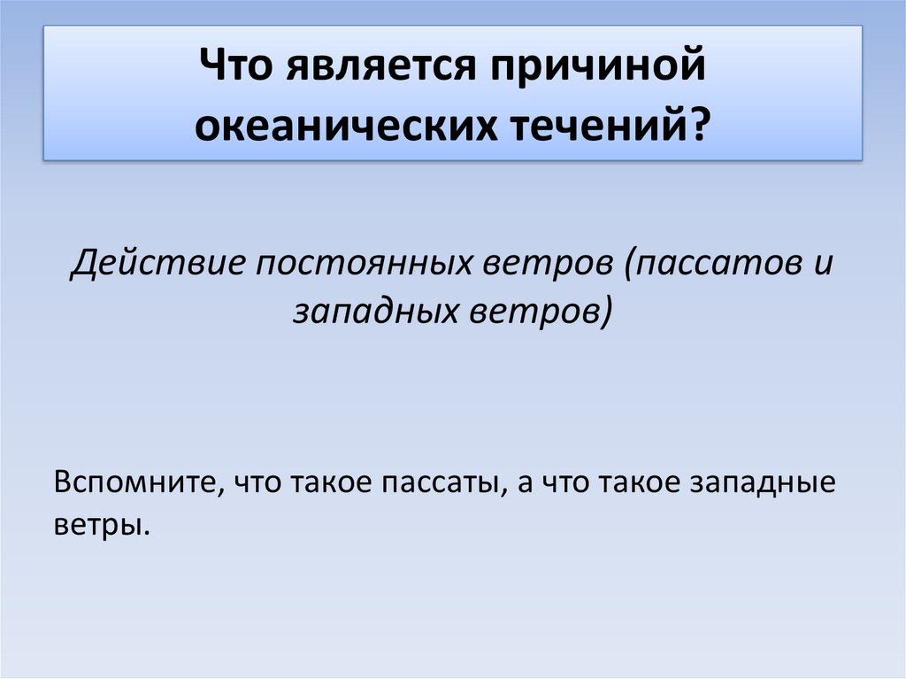 Вспомните, что такое пассаты, а что такое западные