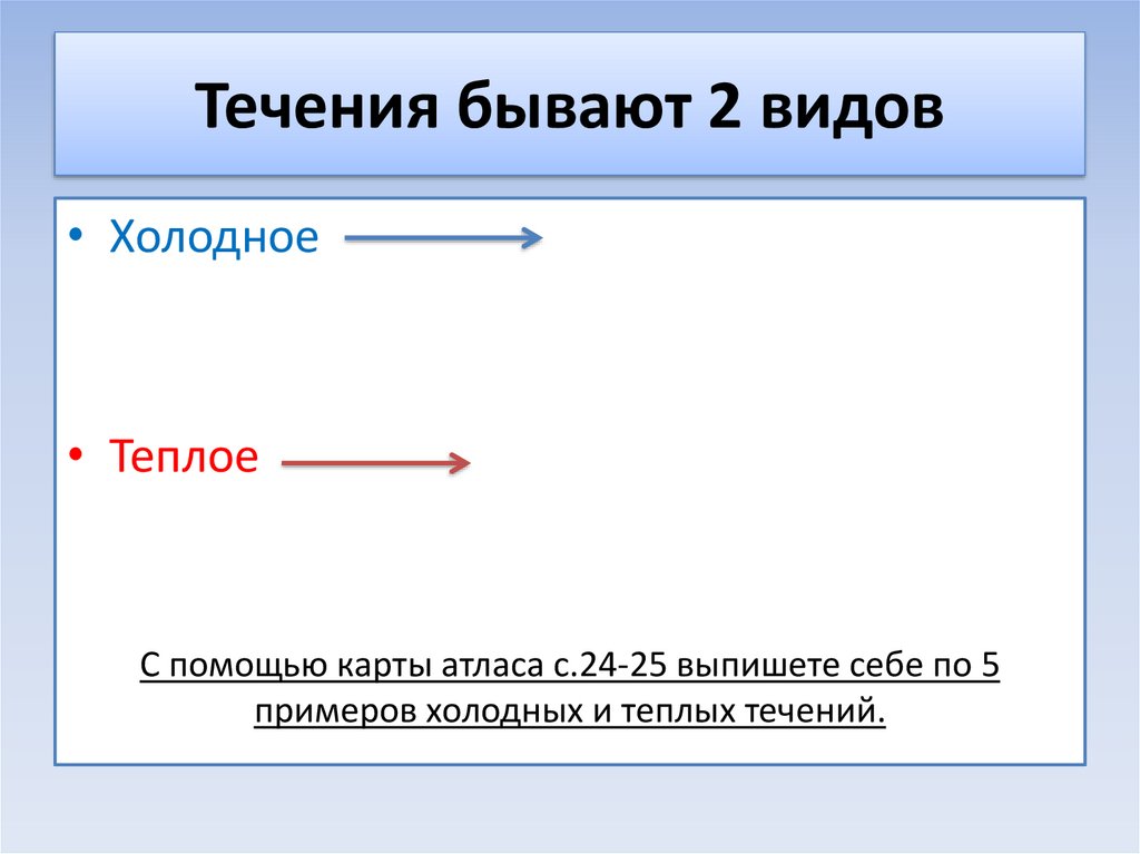 Течения бывают 2 видов• Холодное
