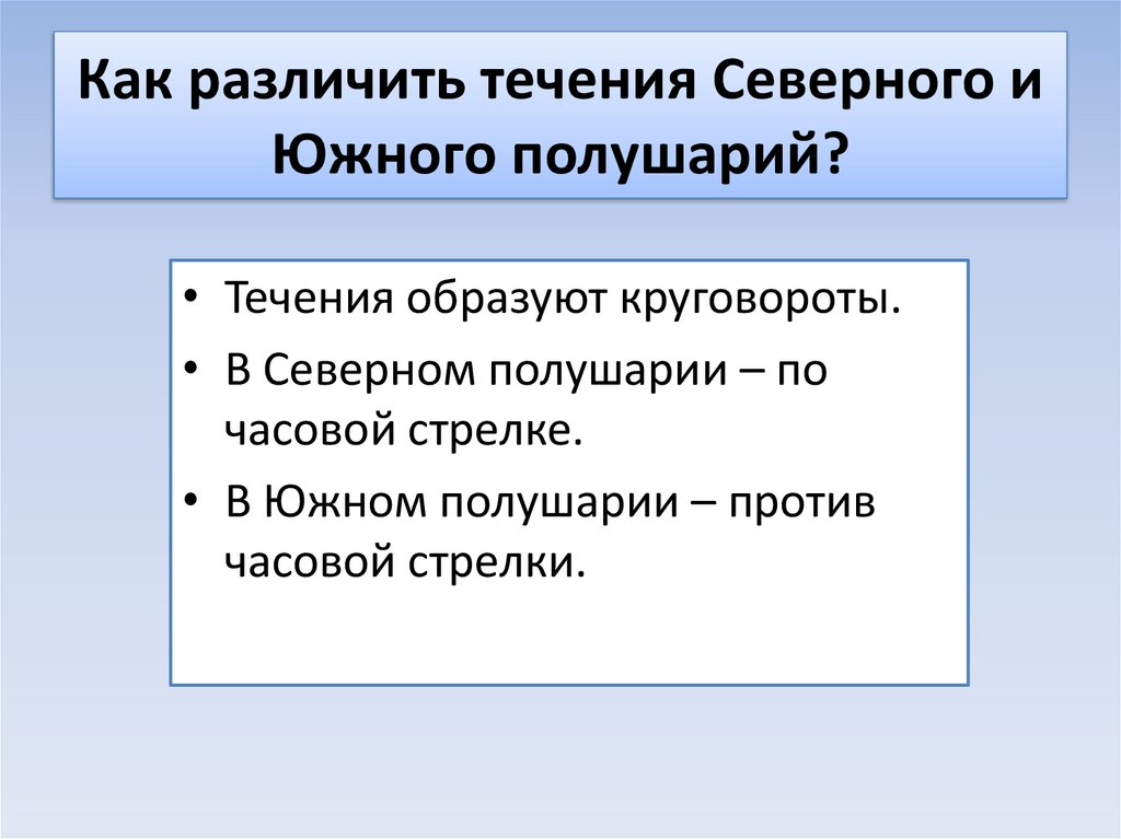 Как различить течения Северного иЮжного полушарий?