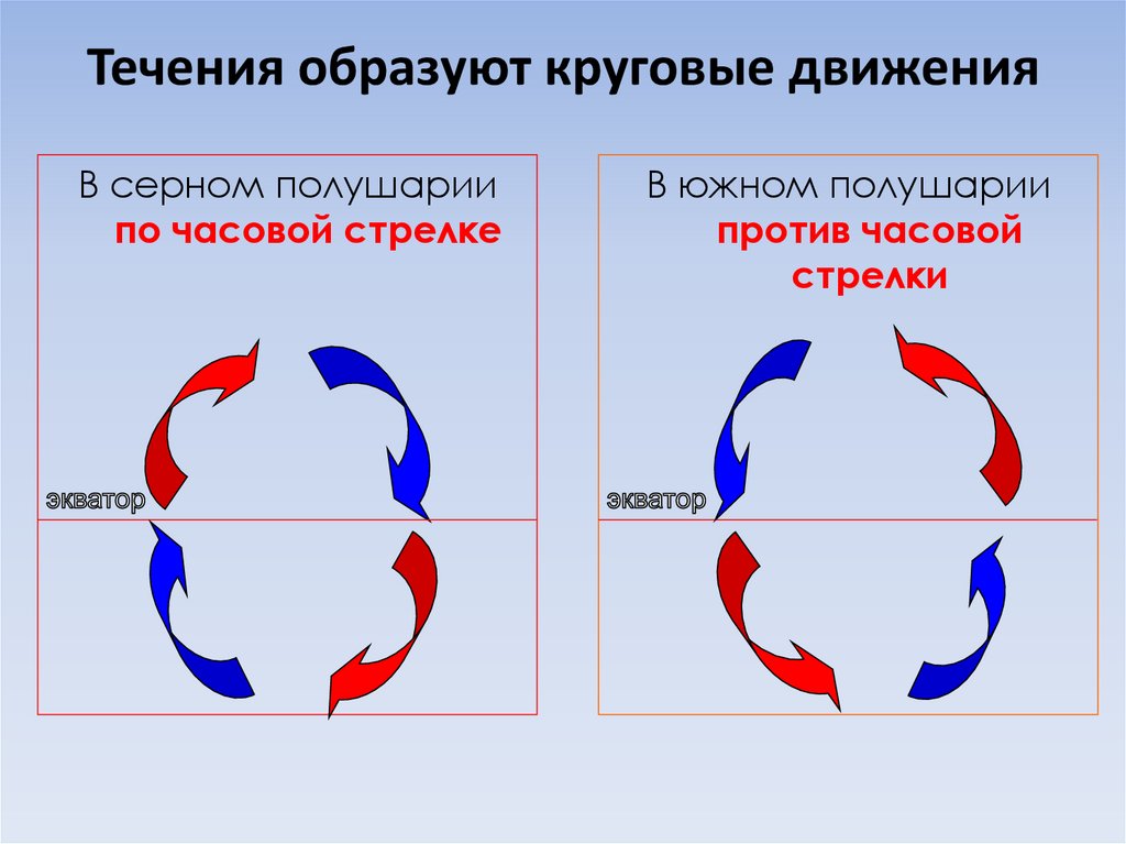 Течения образуют круговые движенияВ серном полушарии