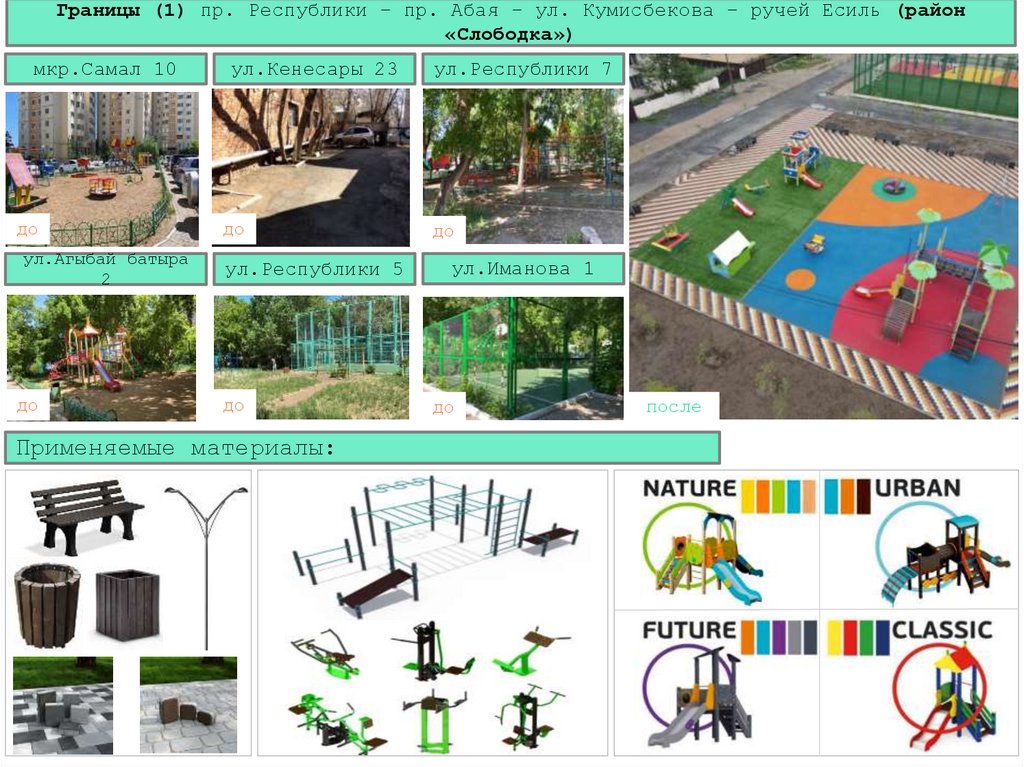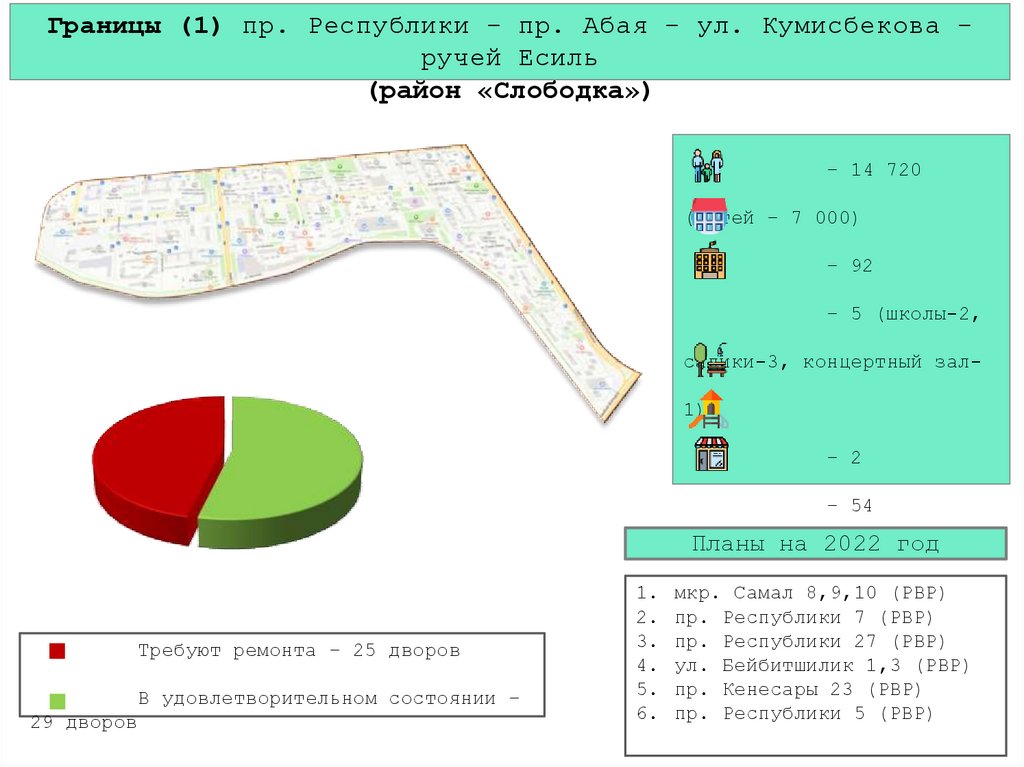 Границы (1) пр. Республики – пр. Абая – ул. Кумисбекова – ручей Есиль (район«Слободка»)