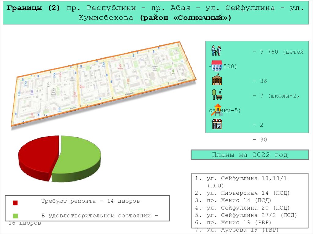 Границы (2) пр. Республики – пр. Абая – ул. Сейфуллина – ул. Кумисбекова (район«Солнечный»)