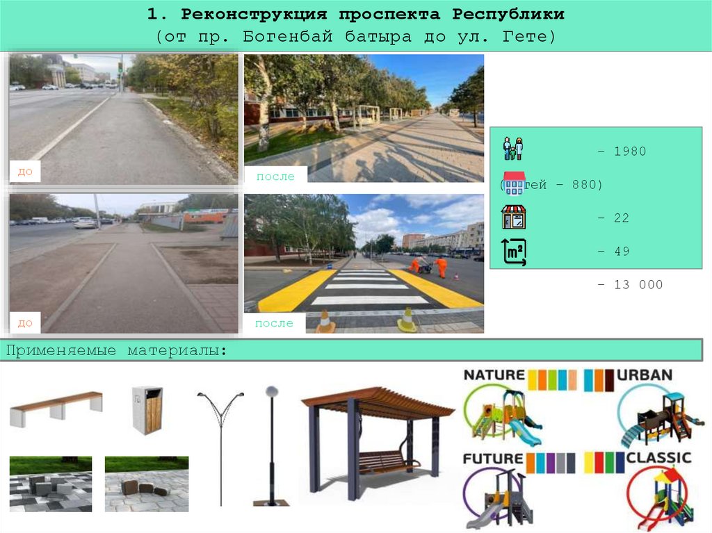 1. Реконструкция проспекта Республики(от пр. Богенбай батыра до ул. Гете)