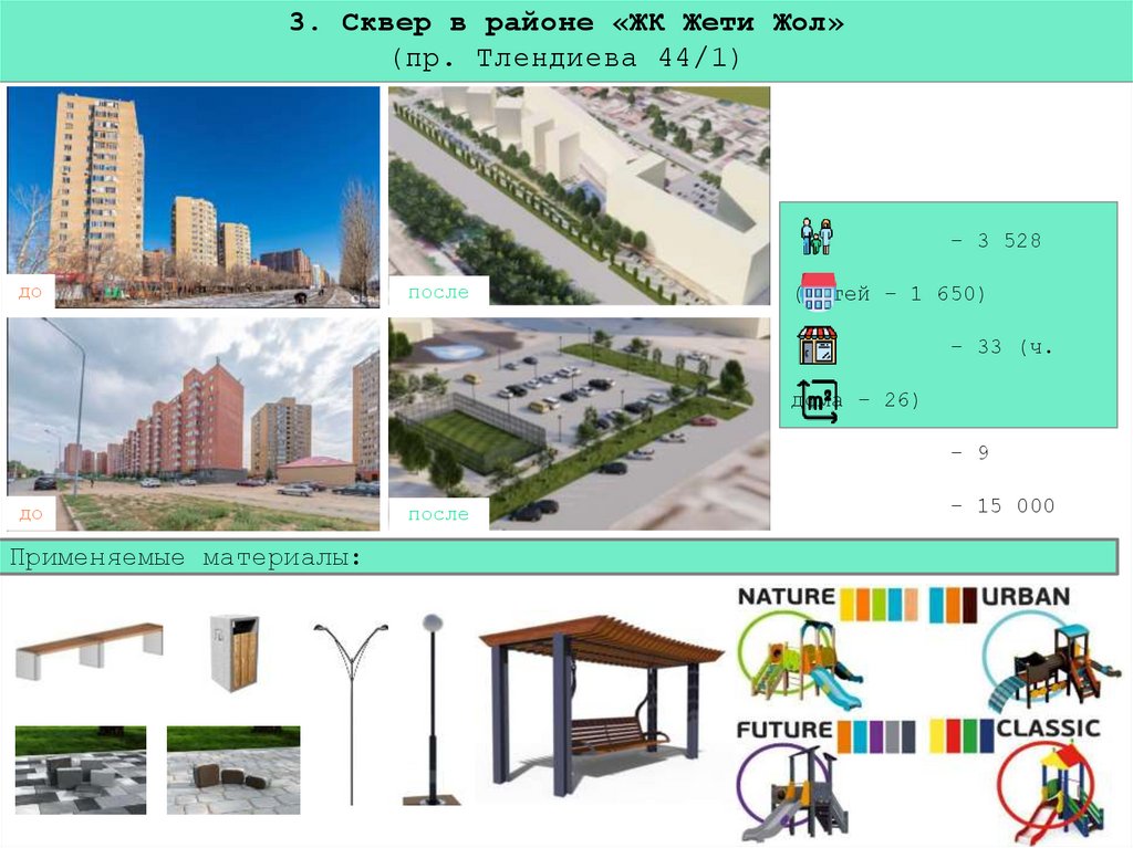 3. Сквер в районе «ЖК Жети Жол»(пр. Тлендиева 44/1)
