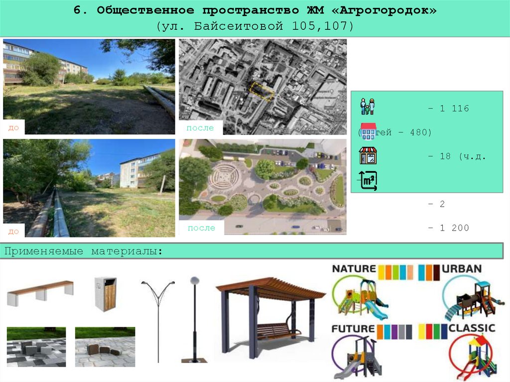 6. Общественное пространство ЖМ «Агрогородок»(ул. Байсеитовой 105,107)