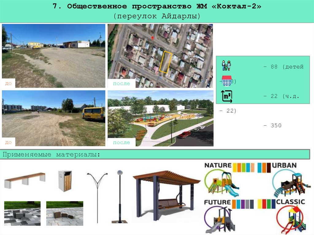 7. Общественное пространство ЖМ «Коктал-2»(переулок Айдарлы)