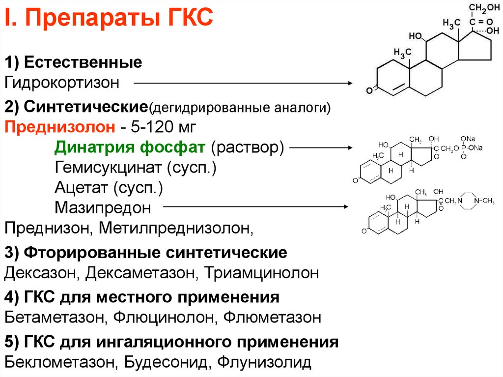 I. Препараты ГКС1) Естественные