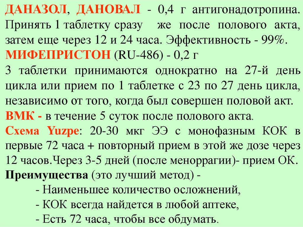 часа после полового акта и без использования