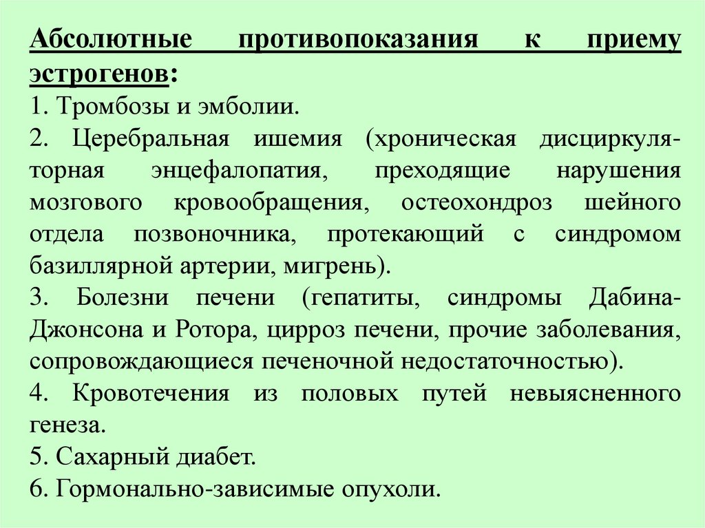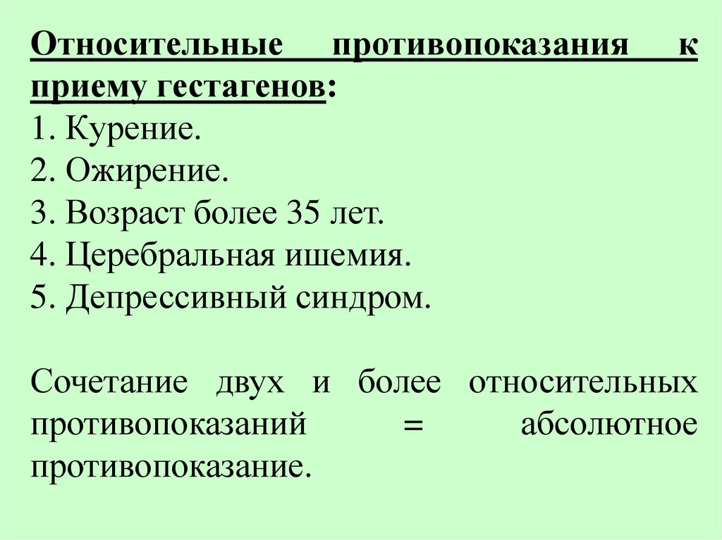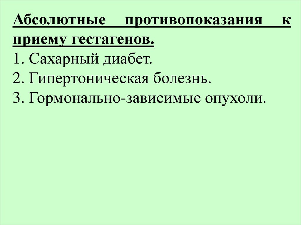 Абсолютные пpотивопоказания кприему гестагенов.