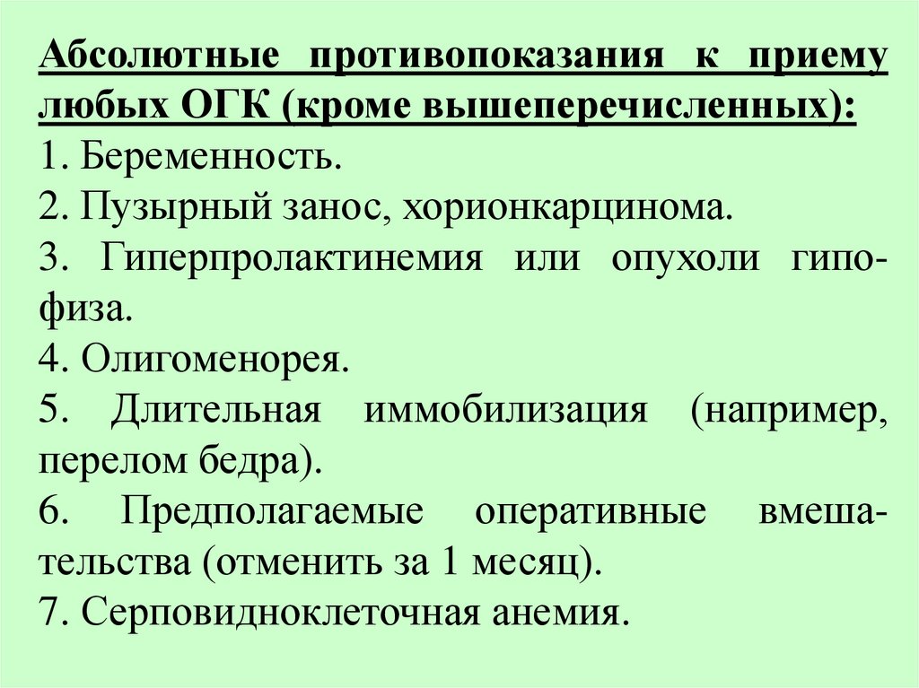 Абсолютные пpотивопоказания к приемулюбых ОГК (кроме вышеперечисленных):