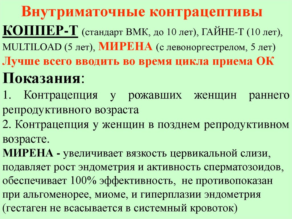 Внyтpиматочные контpацептивыКОППЕР-Т (стандарт ВМК, до 10 лет), ГАЙНЕ-Т (10 лет),