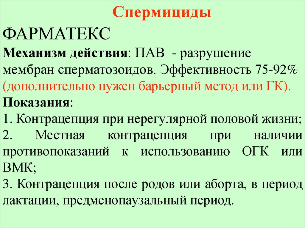 СпеpмицидыФАРМАТЕКС