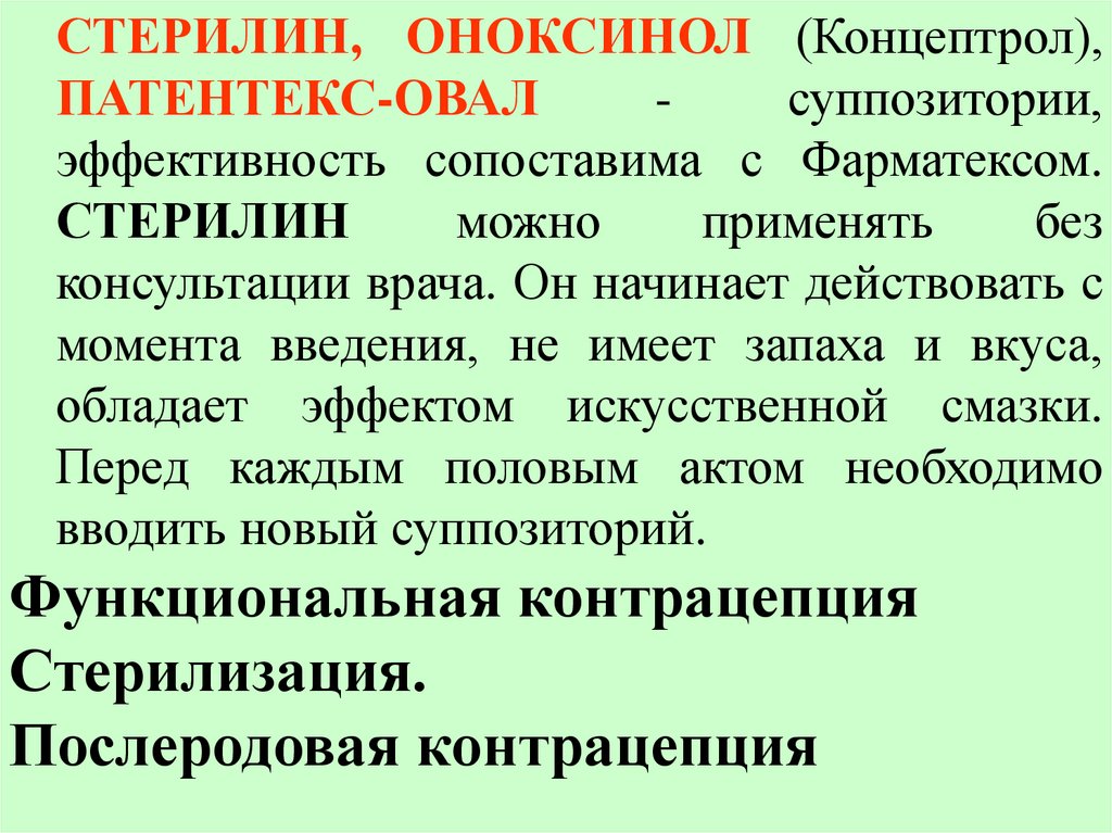 СТЕРИЛИН, ОНОКСИНОЛ (Концептрол),ПАТЕНТЕКС-ОВАЛ