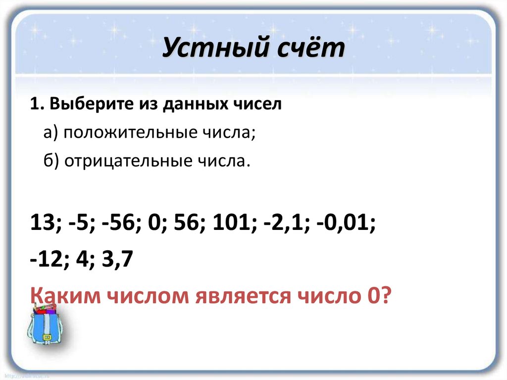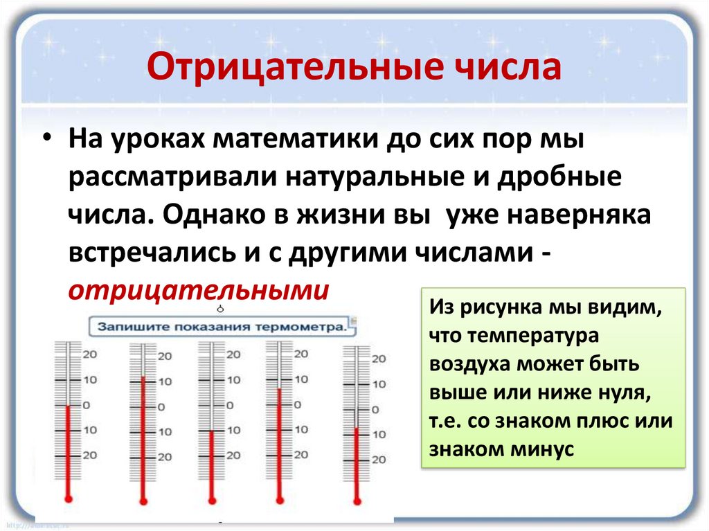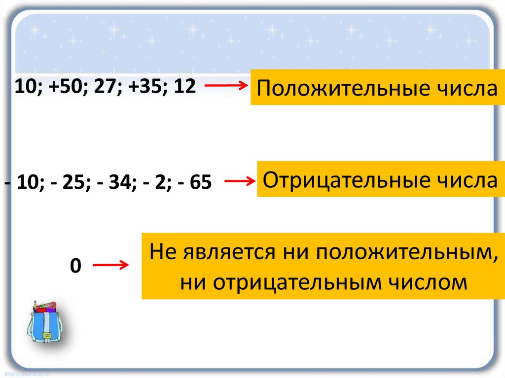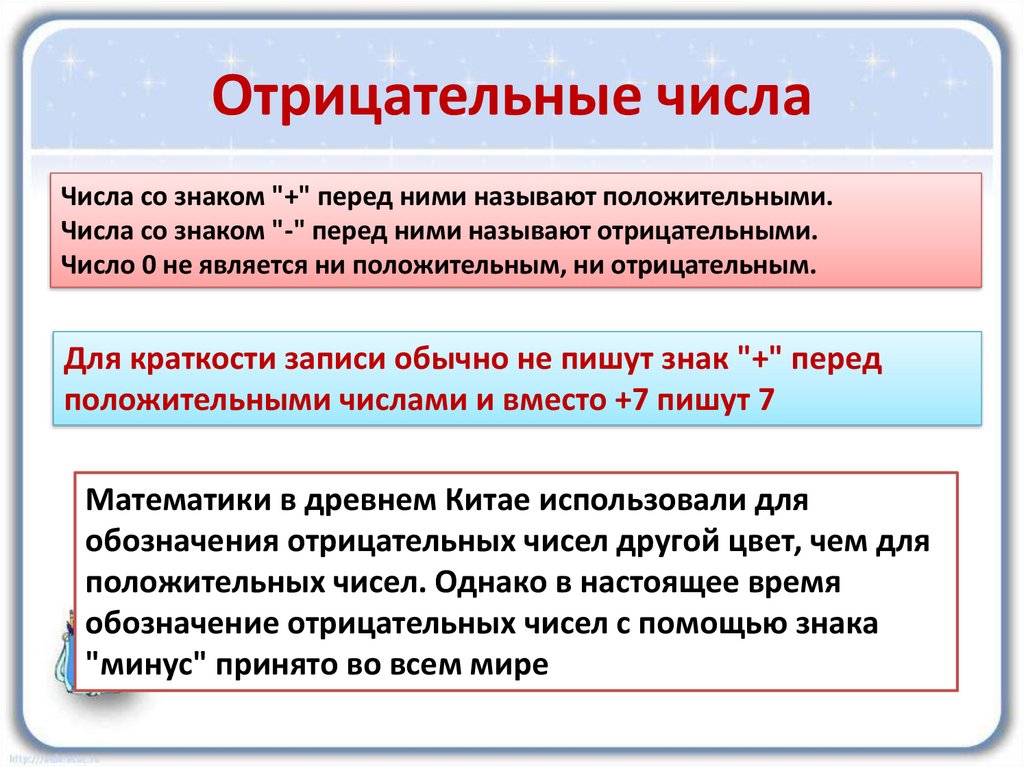 Отрицательные числаЧисла со знаком "+" перед ними называют положительными.