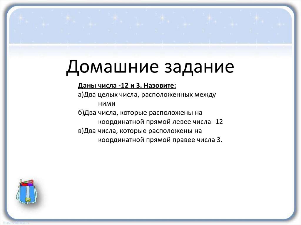Домашние заданиеДаны числа -12 и 3. Назовите: