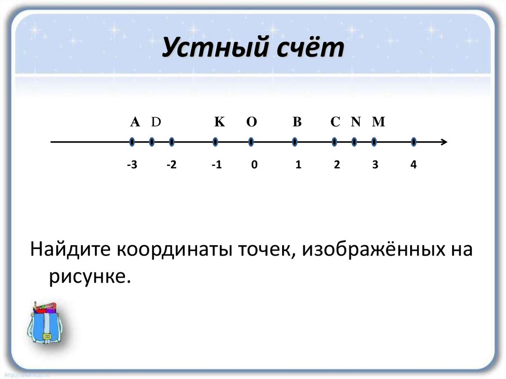 Например, А(5). Читают: точка А с координатой пять. В(-3).