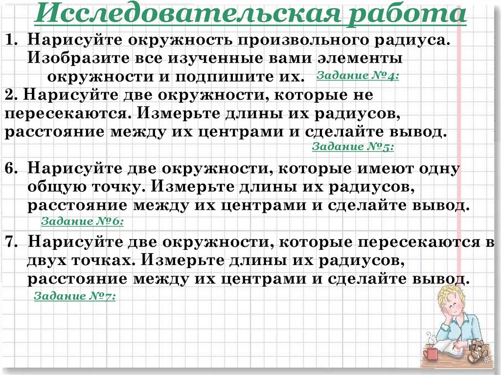Исследовательская работа1. Нарисуйте окружность произвольного радиуса.