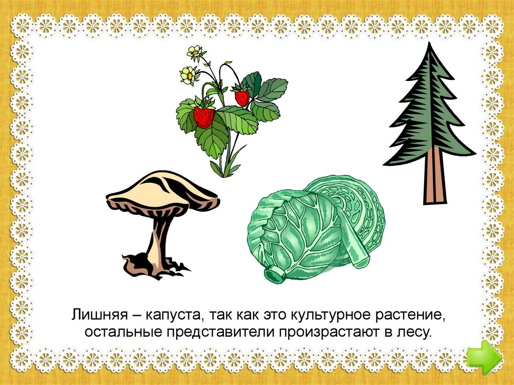 Лишняя – капуста, так как это культурное растение,остальные представители произрастают в лесу.