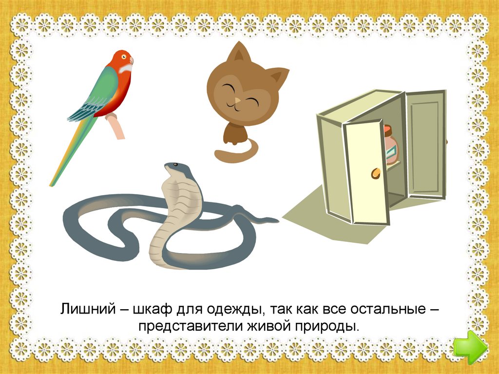 Лишний – шкаф для одежды, так как все остальные –представители живой природы.