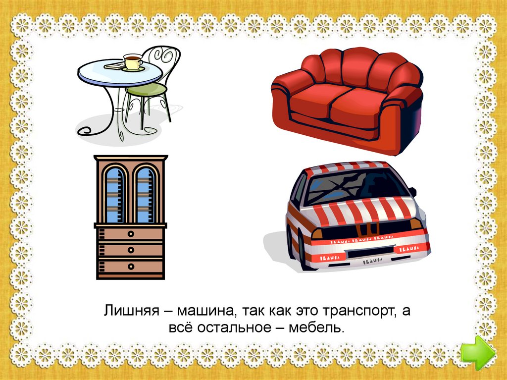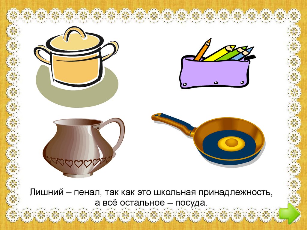 Выбери из предложенных предметных картиноклишнюю. Объясни, почему этот предмет