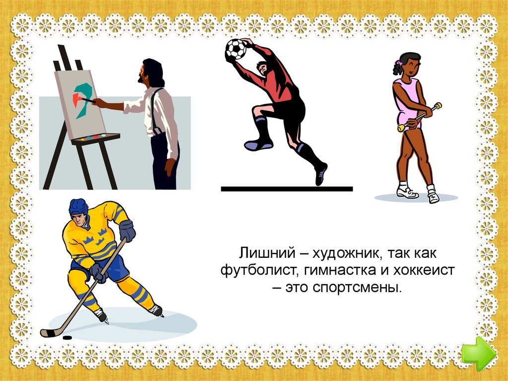 Лишний – художник, так какфутболист, гимнастка и хоккеист