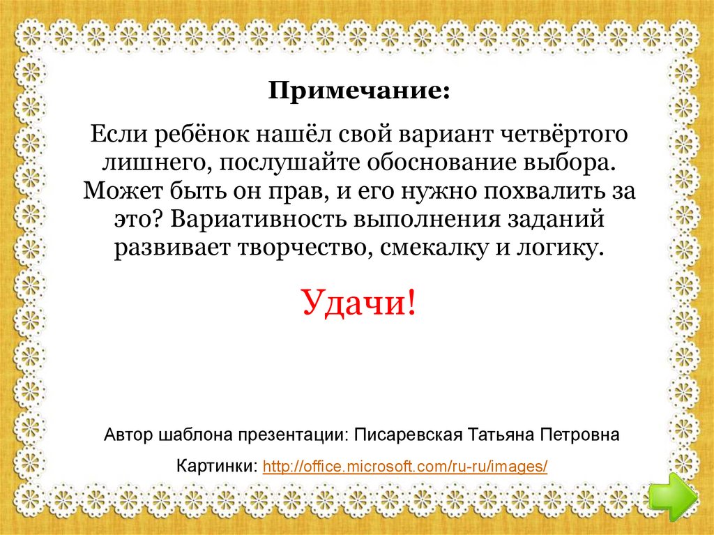 Автор шаблона презентации: Писаревская Татьяна Петровна