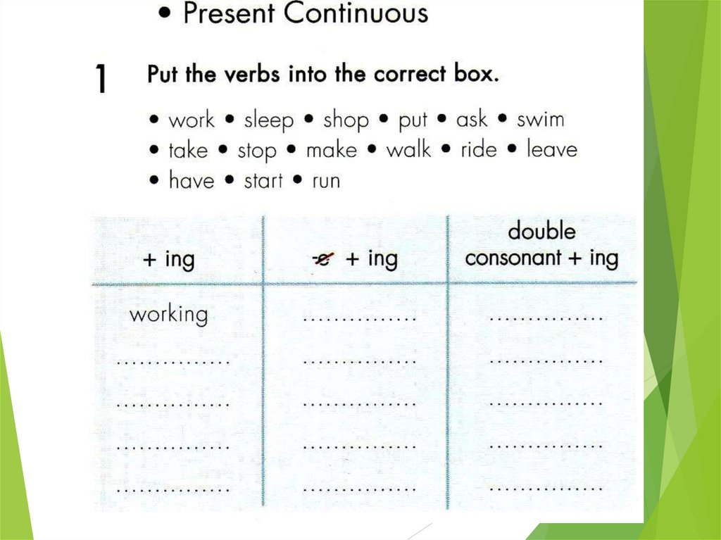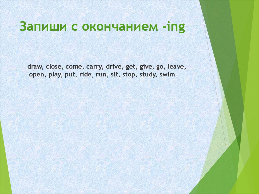 Запиши с окончанием -ingdraw, close, come, carry, drive, get, give, go, leave,