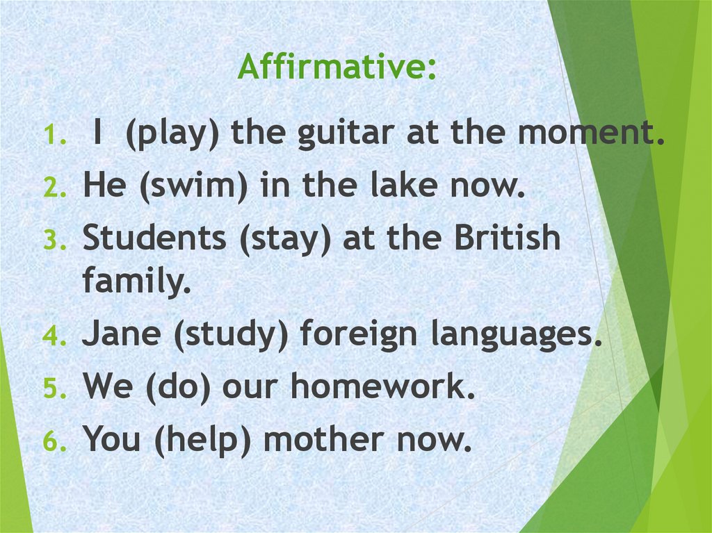 Affirmative:I (play) the guitar at the moment.