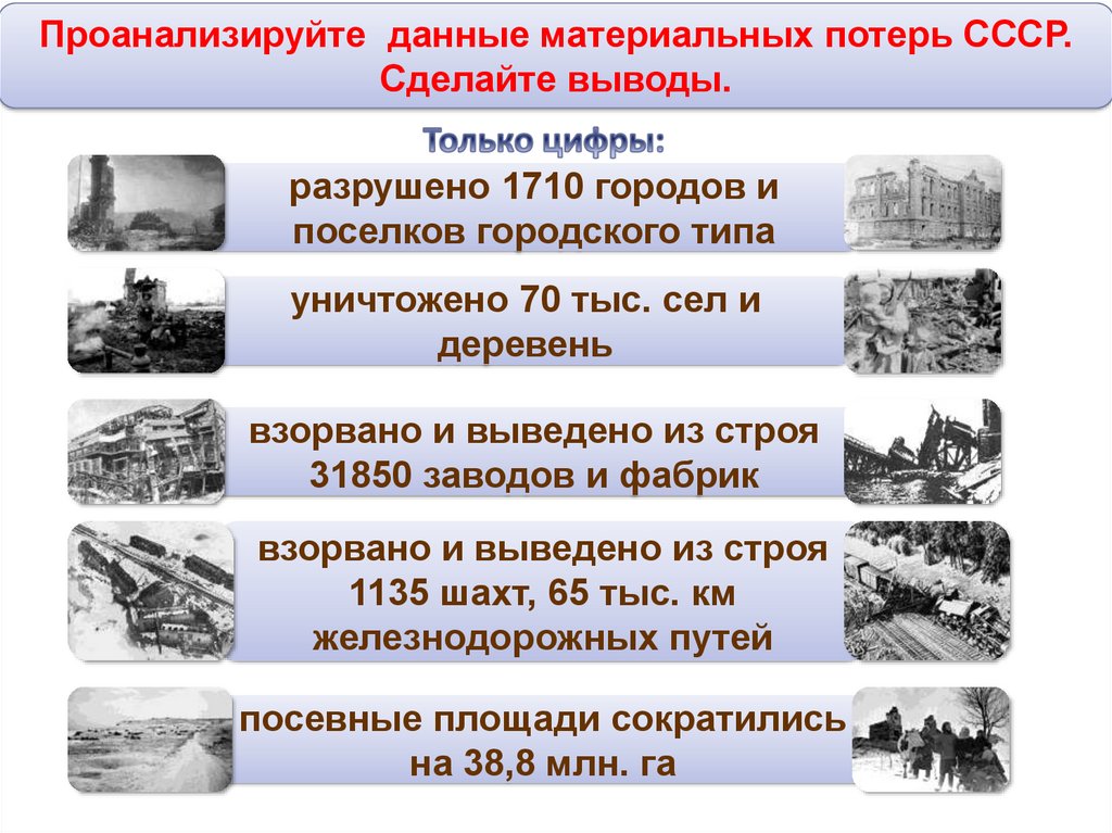 СССР в 1945-1953 гг.2. Последствия ВОВ для экономики СССР.