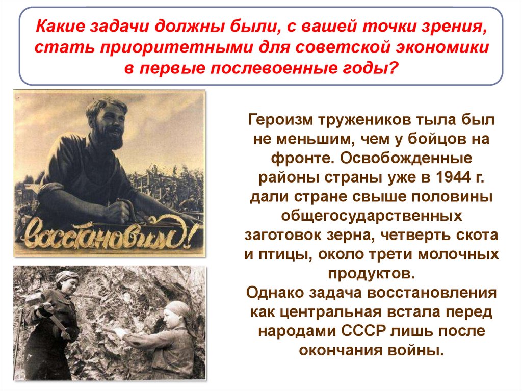 К восстановлению хозяйства страна приступила ещев годы войны. В 1943 г. было принято постановление