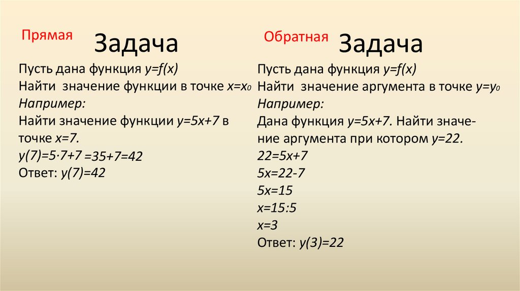 Найти значение функции у=5х+7 в
