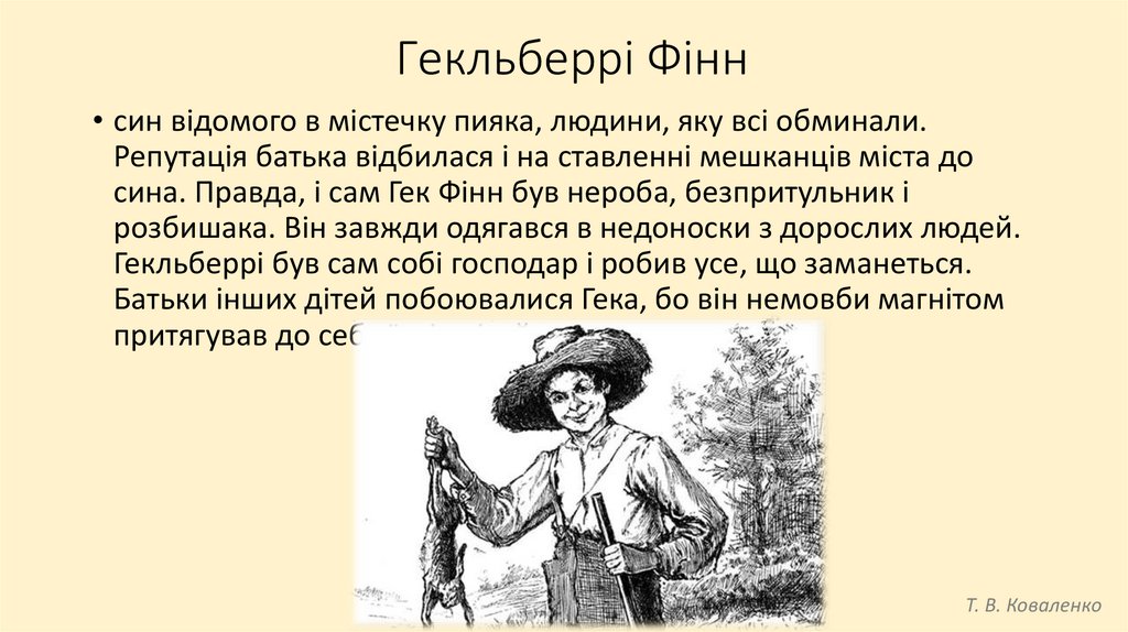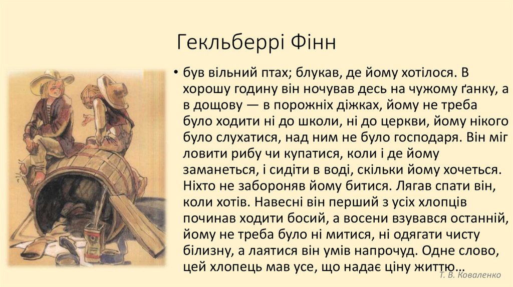 Гекльберрі Фінн• був вільний птах; блукав, де йому хотілося. В