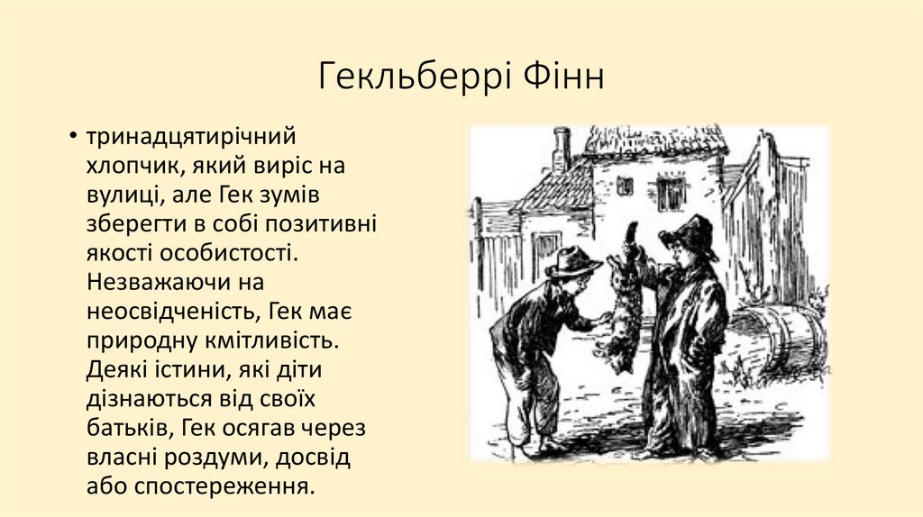 Гекльберрі Фінн• Гек швидше дорослішає,