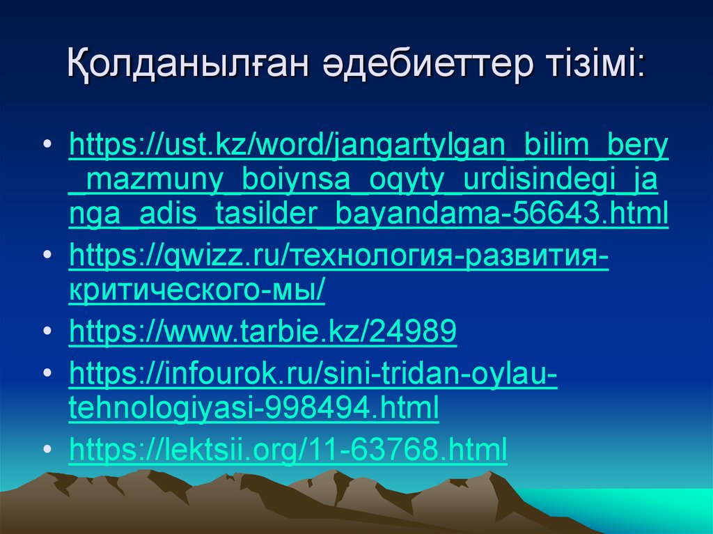 Қолданылған әдебиеттер тізімі:• https://ust.kz/word/jangartylgan_bilim_bery