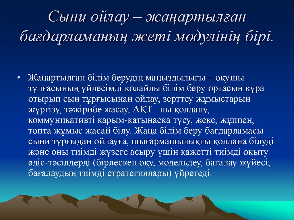 Сыни ойлау – жаңартылғанбағдарламаның жеті модулінің бірі.