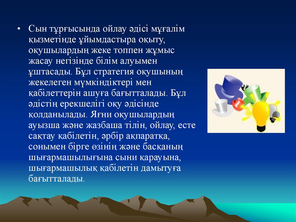 • Сын тұрғысында ойлау әдісі мұғалімқызметінде ұйымдастыра оқыту,
