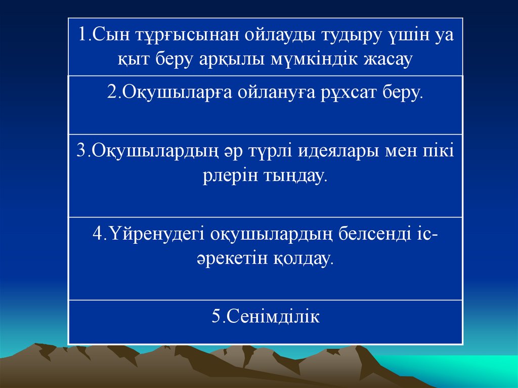2.Оқушыларға ойлануға рұхсат беру.