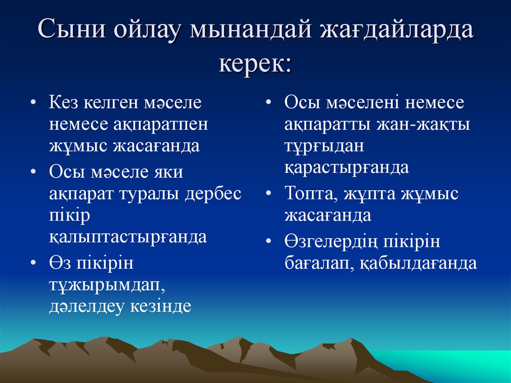 Сыни ойлау мынандай жағдайлардакерек: