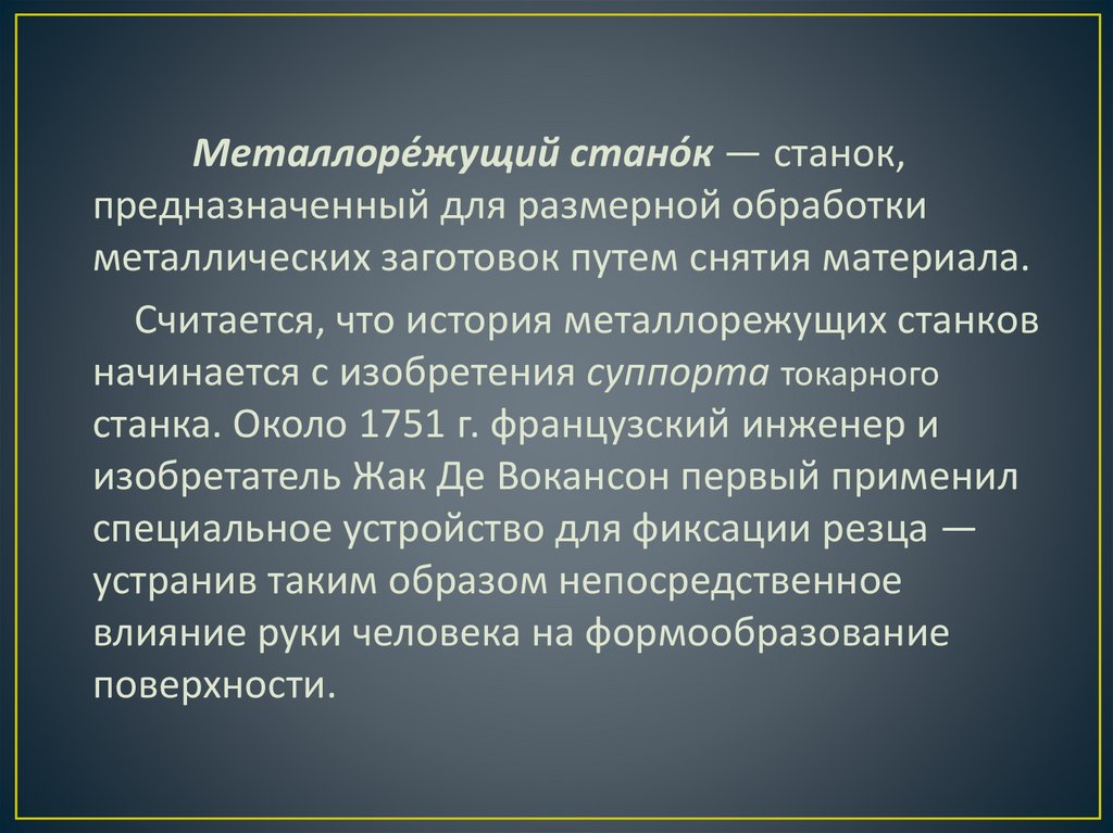 Считается, что история металлорежущих станков