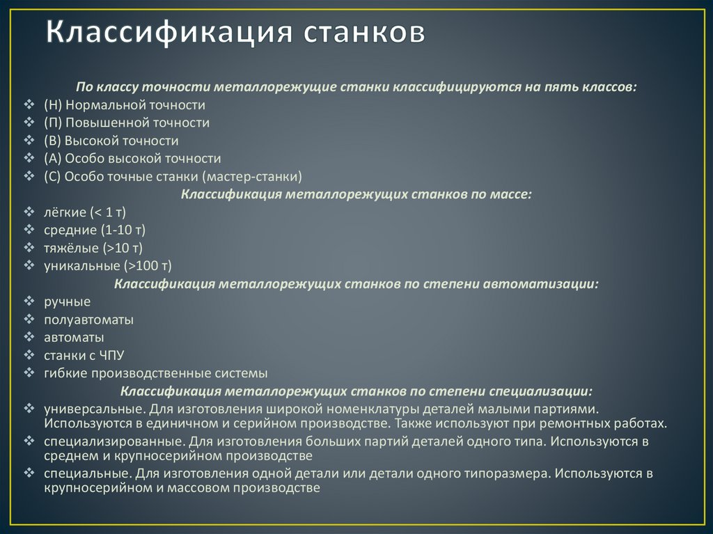 классификация станков