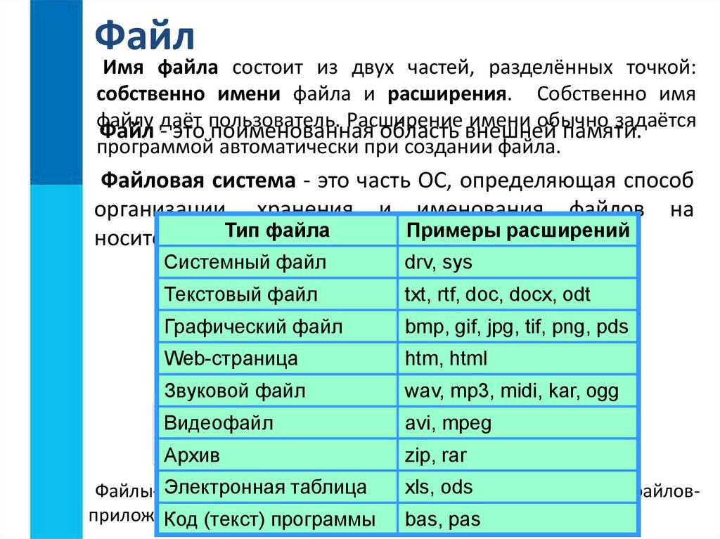 ФайлИмя файла состоит из двух частей, разделённых точкой: