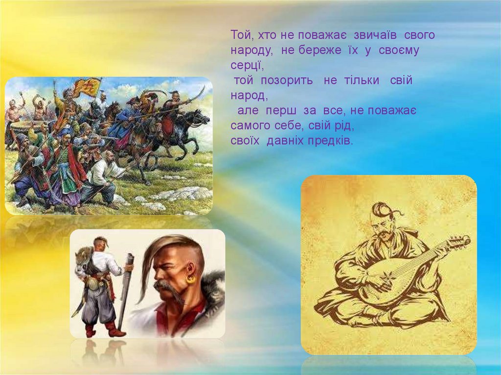 Той, хто не поважає звичаїв свогонароду, не береже їх у своєму