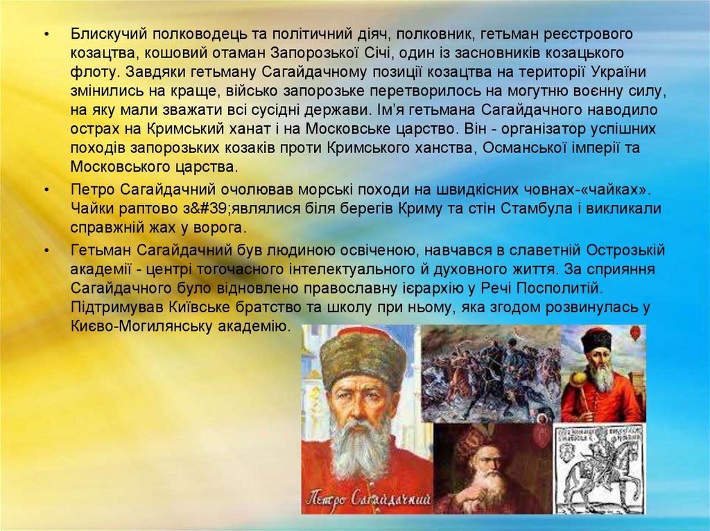 7) гетьман козацький.