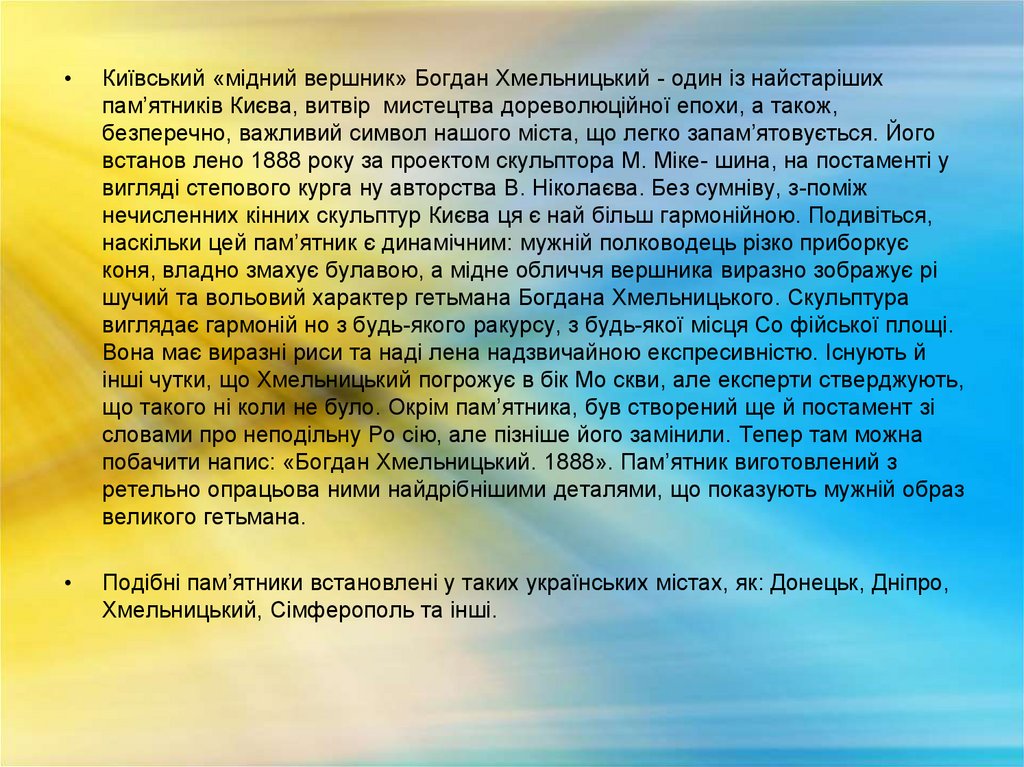 Київський «мідний вершник» Богдан Хмельницький - один із найстаріших