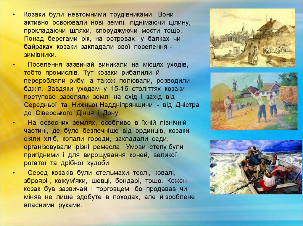 Козаки були невтомними трудівниками. Вони